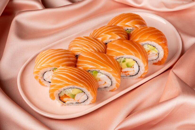Супер-фуд баланс білкової креветочки, багатої на мікроелементи та вітаміни ікри масаго, корисних жирів авокадо і лосося, з вуглеводами рису.